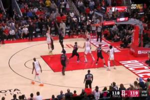 杜兰特被夹击 谢泼德接球灵性突破超级高抛!关键球轰进!