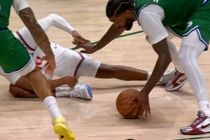 布克人都懵了!切特抢篮板轻微对抗夸张倒地造犯规+前仰跳投骗哨