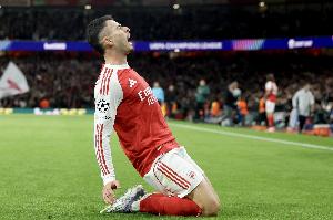 伊恩·赖特在天空体育表示:“从阿森纳的角度来看,我会让马丁内利上场。马丁内利永远在我的首发名单中,尤其是在温布利这样的比赛日。阿森纳需要向前推进,但我们在控球方面做得不够好,时间也不够长,所以阿森纳需要有人能带球摆脱困境,同时给对手制造麻烦。”