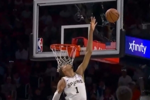 这怎么玩?小米切尔突破提前抛投 文班补防长舒猿臂直接摘帽!