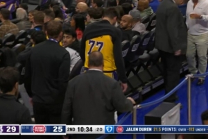 希望没事啊!东契奇膝盖有些不适 已返回更衣室