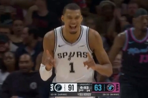 笑嘻了~瓦塞尔借掩护抛传助飞文班空接暴扣 马刺领先到28分!