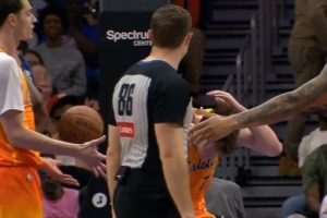哈哈!球迷篮筐后面投篮直接砸到了克尼佩尔脑袋