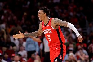 上半场,火箭前锋小贾巴里·史密斯稳定输出,打了18分钟10投5中,三分6中3拿到13分1篮板2盖帽,正负值+16。
