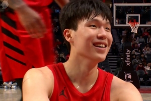 哎我这好帽呀!杨瀚森篮下大帽被吹犯规 微笑看向裁判表示不解