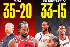 去年12月,泰伦·卢为洛杉矶快船设定了一个明确的目标:以35胜20负的成绩强势结束本赛季。