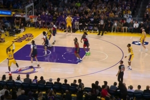 偷袭小同志!老詹示意压节奏 随后突然启动 空切暴扣杀死比赛!