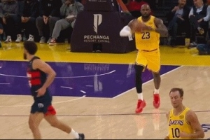 偷袭小同志!老詹示意压节奏 随后突然启动 空切暴扣杀死比赛!