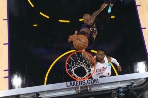 上来就拉满!米切尔首攻快速攻筐 詹姆斯身后追防大帽扇飞!