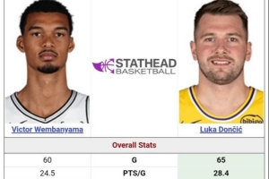 22岁文班场均24.5+11.4+3.1帽 22岁东契奇28.4+9.1+8.7最终MVP第5