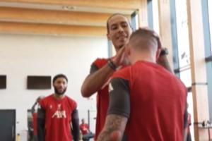 直面脱发27岁麦卡寸头新造型回归利物浦训练,范戴克上手狂摸