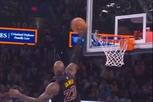 瘦死的骆驼比马大!华莱士强突试图上篮 詹姆斯血帽扇到观众席