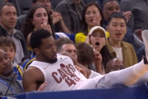 低级!哈登和米切尔简单传接球失误 后者飞身救球砸踏技术台