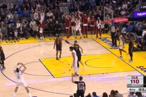 波杰姆斯基包夹哈登放空斯特鲁斯 后者关键空位三分压哨命中!