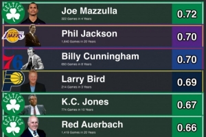 主帅胜率榜:马祖拉力压禅师 科尔第8&雷迪克第9 波波维奇第10
