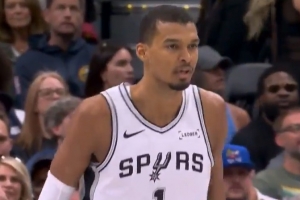 外线也开了!文班亚马跟进接球不犹豫 轰进正面打板三分!