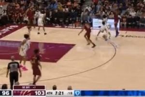 准备收比赛!哈登追身三分球命中 骑士领先到10分