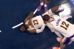 你可不能再伤了!詹姆斯被米德尔顿顶到腹股沟位置痛苦倒地