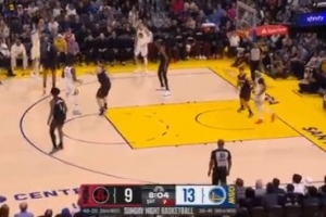 弟弟先来!赛斯·库里率先替补登场 随即三分一箭穿心