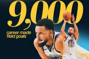 加上这4个进球,库里生涯运动战进球数达到9000,历史第26人。