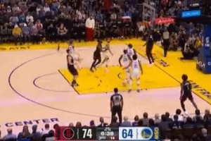 专注!杜兰特持球强攻 直插篮下起飞暴扣率队保持优势