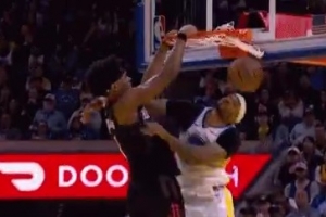 弹速惊人!阿门切入接球直接暴起双手隔扣小佩顿打成2+1