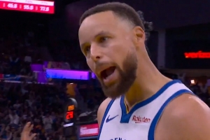 王者归来!库里单挑伊森后撤步三分飙中后大喊:I‘m back!