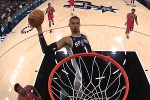 脸在篮筐上方!马刺防守反击 文班大步向前俯视篮筐单臂空接