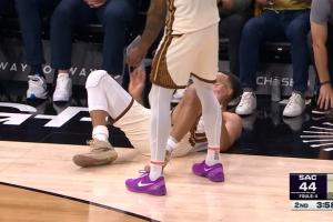 看起来超级疼!亚历山大上篮倒地后手指戳到地板 有点受伤