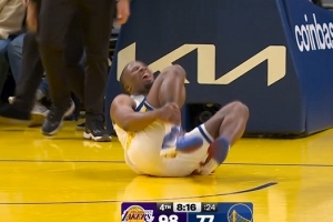 望无大碍!克赖尔出手后落地踩到对手出现崴脚 勇士被迫叫停