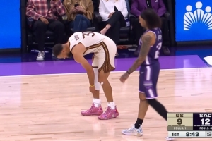 虚惊一场!库里有点崴脚 好在是调整后能继续打