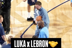 聊什么呢?媒体晒詹姆斯和东契奇场边闲聊 老詹还推了东契奇一把