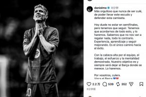 奥尔莫社媒:无缘半决赛令人痛心,我们必将巴萨带回应属位置