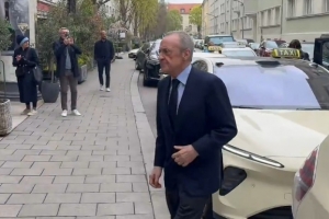 体育资讯4月15日讯 欧冠1/4决赛次回合皇马将在客场迎战拜仁,皇马主席弗洛伦蒂诺已经抵达慕尼黑,将与拜仁高层共进午餐。