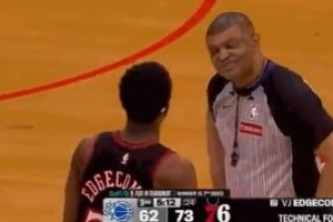 毕竟新秀!埃奇库姆和萨格斯发生摩擦 被吹技犯后努力跟裁判辩解