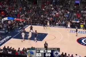 差了一点点!库里吸引防守再分球 桑托斯超远三分涮筐而出