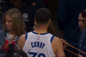 末节开打前 库里再次走回更衣室 目前已经回到场边