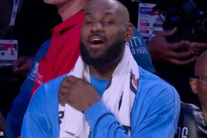 詹詹自喜詹姆斯昨日在板凳自嗨笑骂:法克文班~