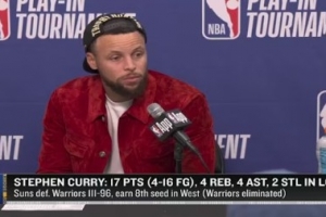 体育资讯4月18日讯 NBA附加赛,勇士96-111不敌太阳。赛季结束。赛后库里接受了媒体采访,以下为采访全文。