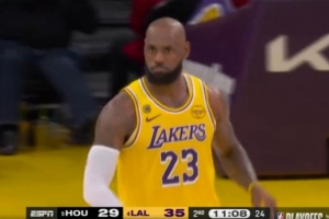 手热!詹姆斯中投空心命中 率队牢牢占据场上主动