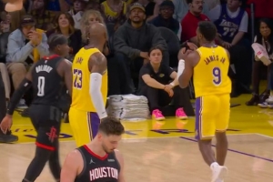 传得不好!布朗尼分球给詹姆斯出现失误 老爹给予鼓励