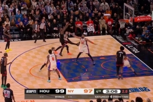防守建功!布伦森奋力堵枪眼 造成阿门进攻犯规