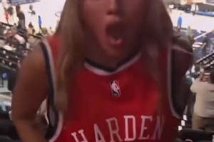 还是有绝活!女登密发现自己把哈登球衣穿反了,当场换回来~