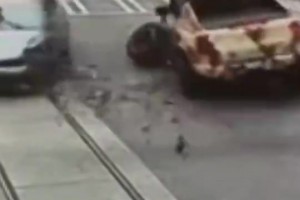 车祸现场监控对方直行!三球左转不减速直接撞上去!