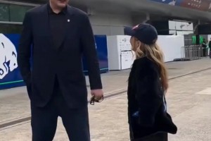 两人有说有笑~1米75的谷爱凌在2米26姚明身边好小一只