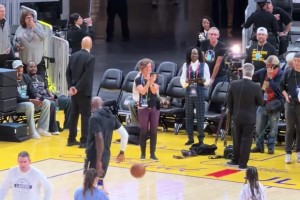强如老詹,在女儿茱莉投篮时,也得乖乖去捡球!
