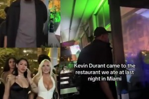 哇塞,小帅会玩啊!美媒晒视频:杜兰特带一群辣妹一起吃饭