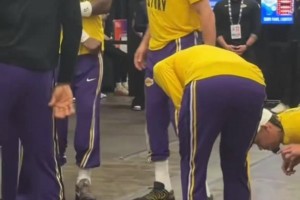 东契奇&里夫斯赛前打闹,老詹就像老父亲一样看着他们