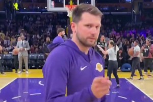 真的有魔法!东契奇昨日赛前在LOGO处,背对篮筐扔进三分