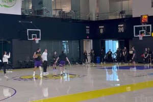 今天训练结束后,东契奇和里夫斯还PK了一下LOGO投篮!